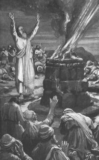 23 Let them therefore give us two bullocks; and let them choose one bullock for themselves, and cut it in pieces, and lay it on wood, and put no fire under: and I will dress the other bullock, and lay it on wood, and put no fire under: 24 And call ye on the name of your gods, and I will call on the name of the LORD: and the God that answereth by fire, let him be God. And all the people answered and said, It is well spoken. 23 - Answereth by fire A reasonable plan. Satan with evil people may work miracles (re1313, see note a). Here the contest was about whether the true god was Baal or Yahweh (Jehovah). Yahweh had power over Baal. Image is of
