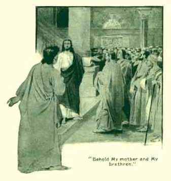 Mary's role or absence thereof: "Then came to him [Jesus] his mother and